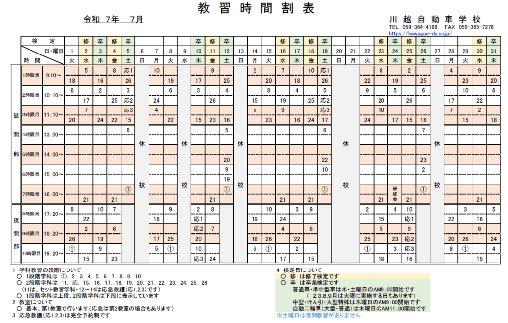 - 1.1. 教習時間割