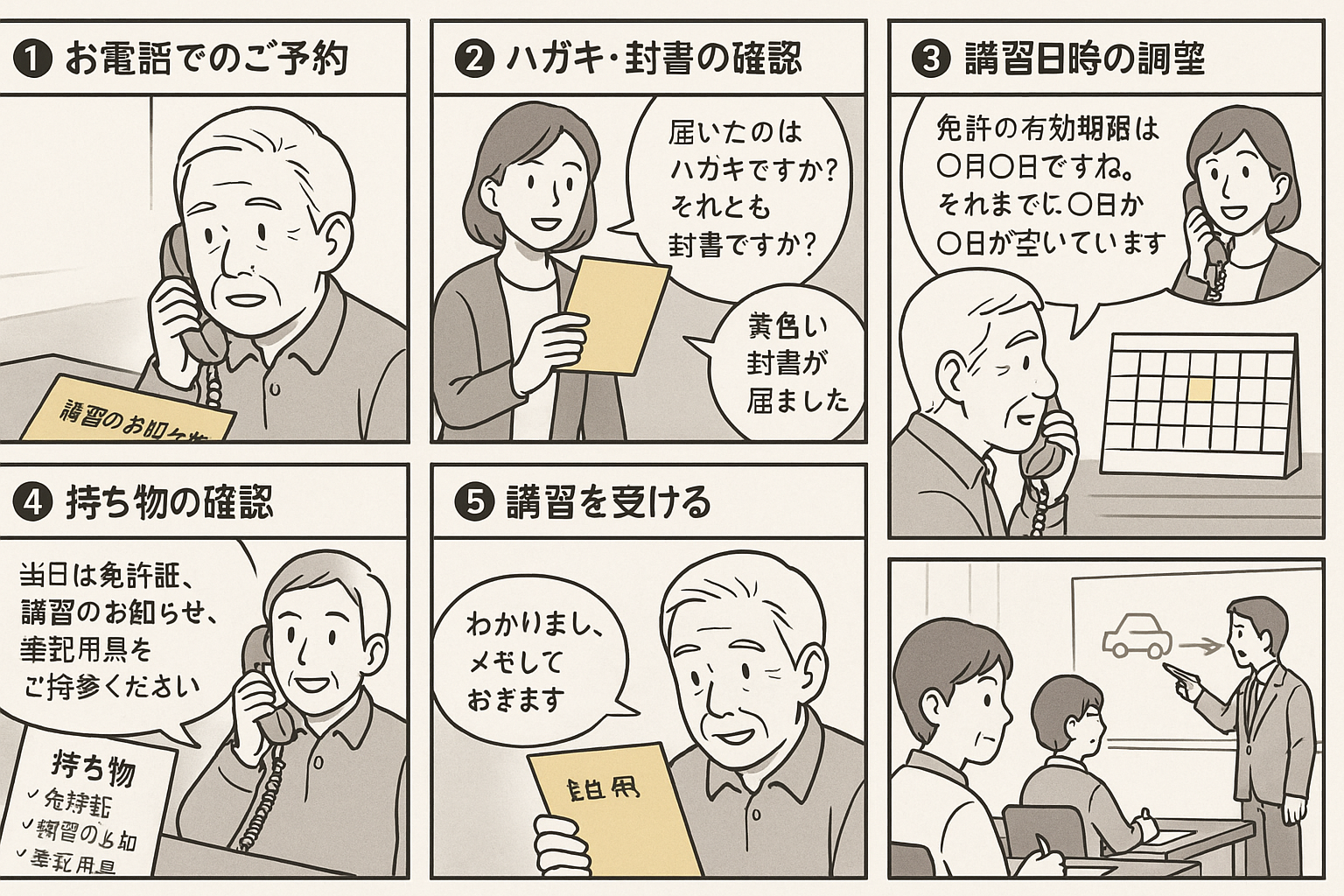 自動車学校で認知機能検査と高齢者講習の受検予約をしてください。